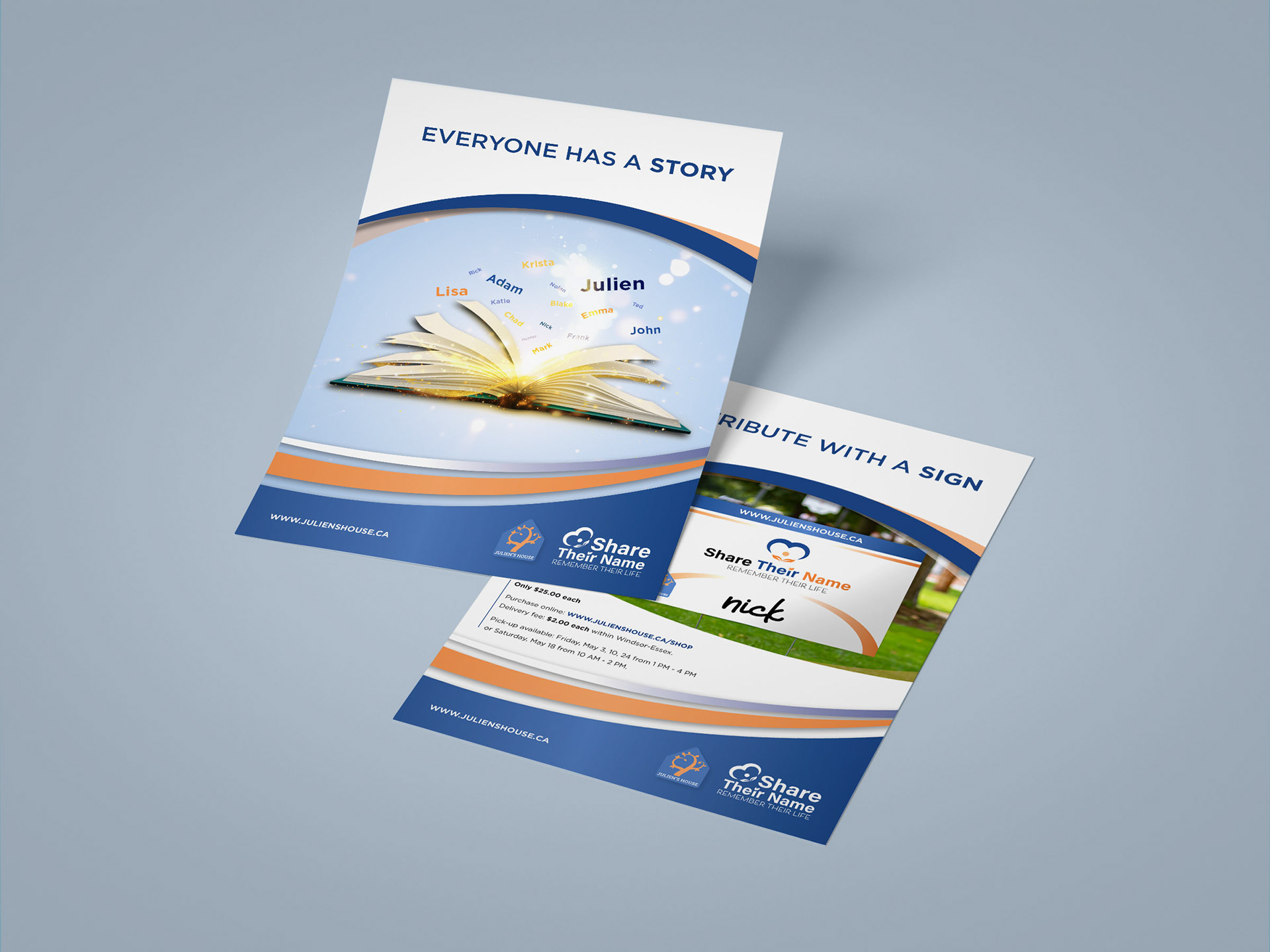 Julien’s House came to us with the goal of launching a campaign centred around remembering loved ones that have passed. Social media posts, lawn signs, and wrist bands were designed along with the logo design and visual identity. The local non-profit organization was the winner of Generator’s Wind-Up event.