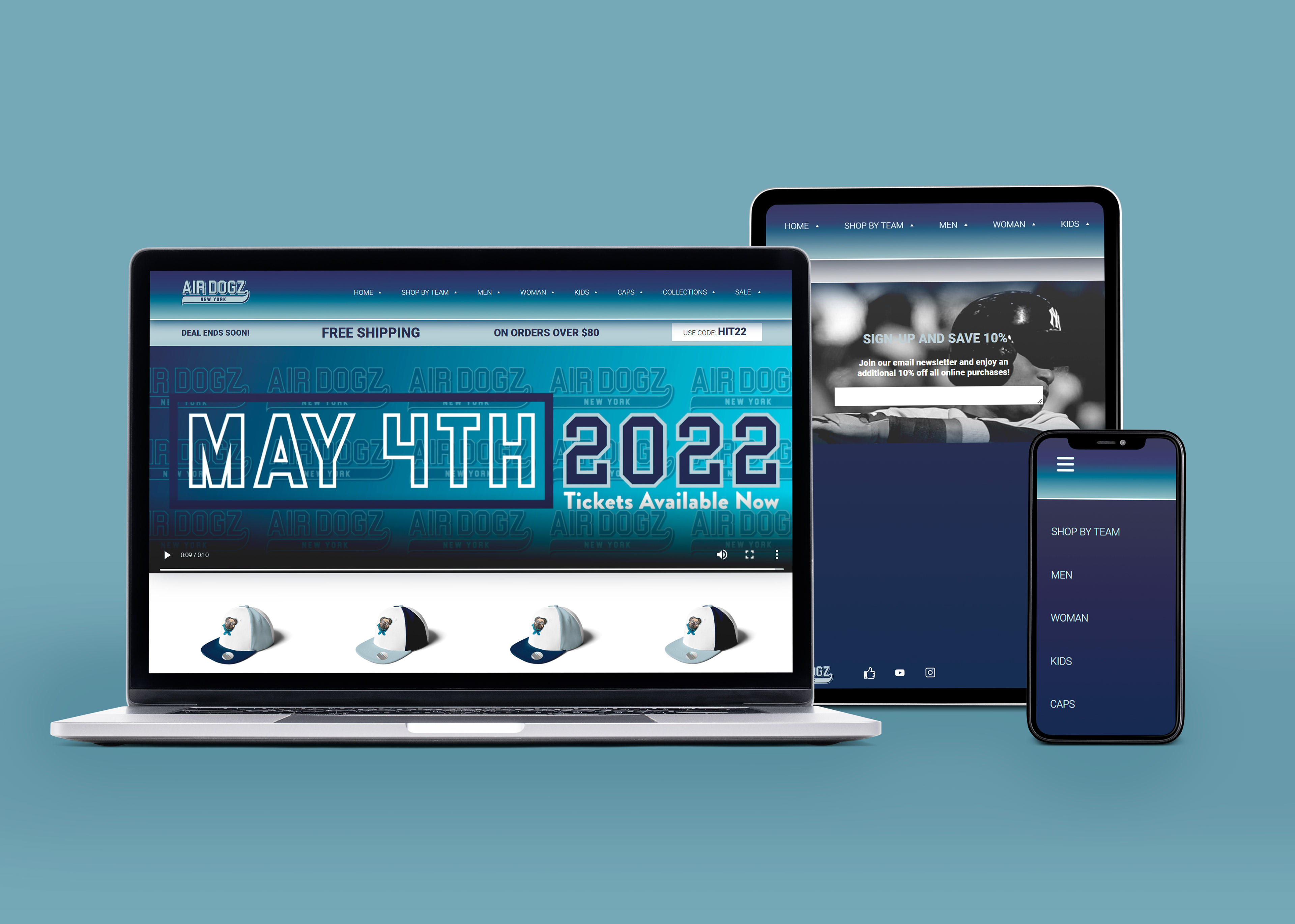 The New York Air Dogz is a Minor League Baseball Team promoting the history and playfulness of the brand. A brand identity was created with promotional items.