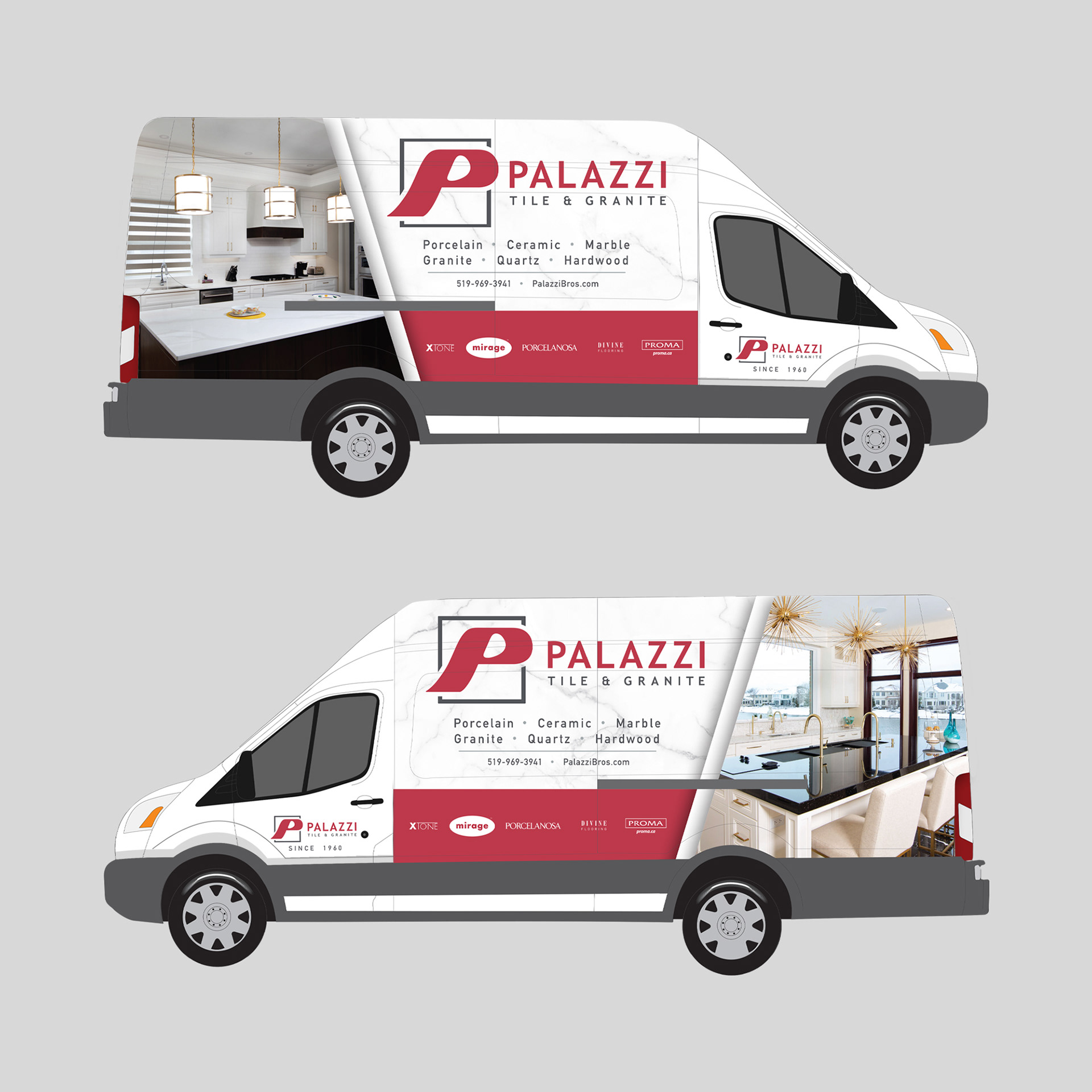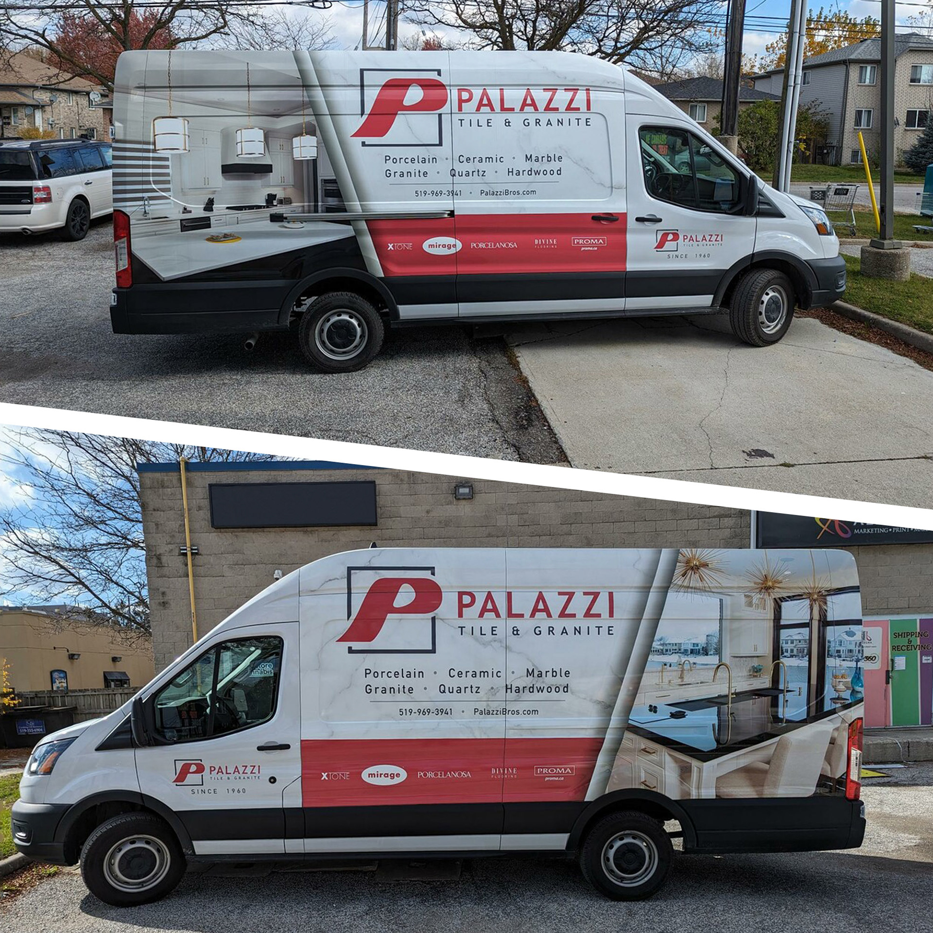 Palazzi Bros. Tile & Granite Windsor continues to lead the way in the exciting world of construction and home decorating. A new design was created for the delivery vehicles.